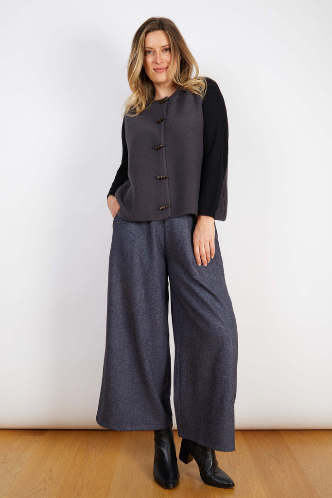 Navy Wool-Blend Wide-Leg Pants – Effortless Elegance & Comfort - KK74
