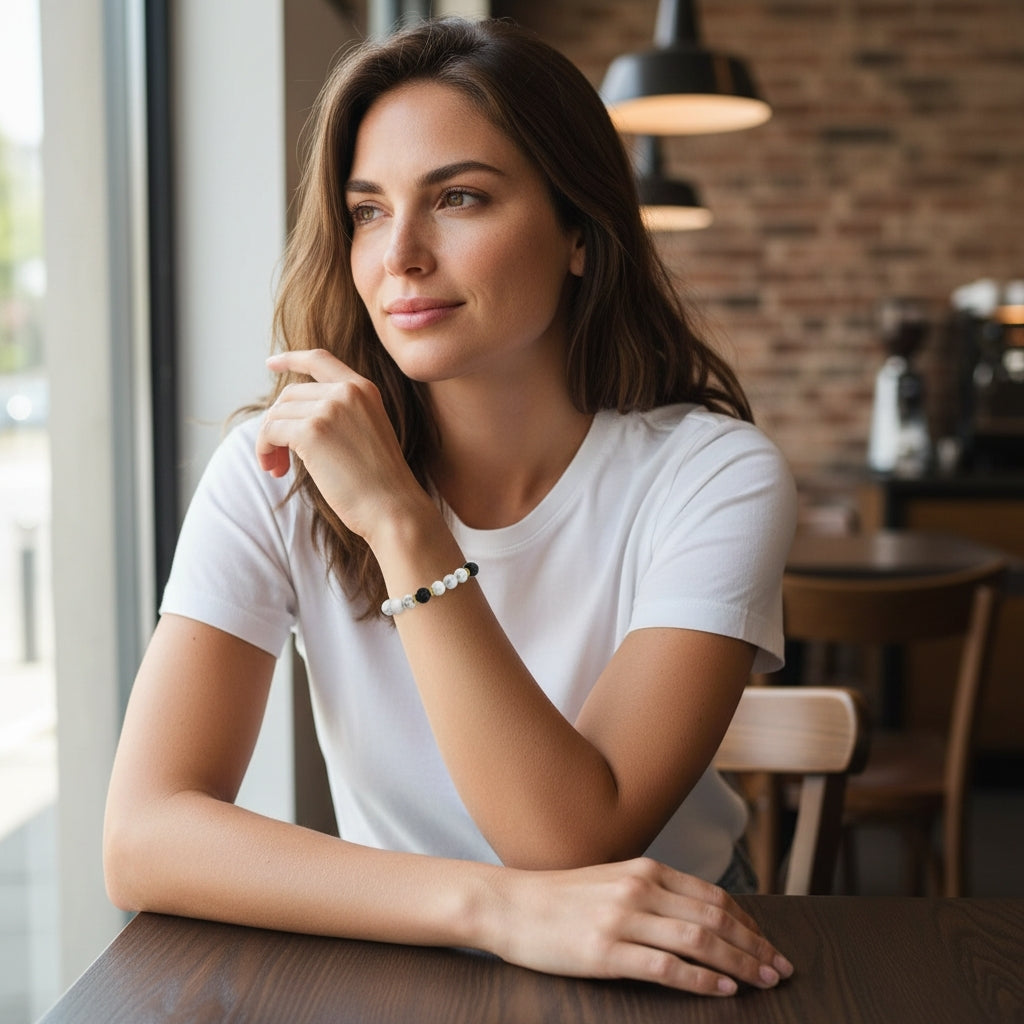 Serendipity feels like a quiet nudge from the universe—this bracelet captures that energy beautifully. Lava keeps you grounded when life gets fast, turning pressure into purpose, while White Turquoise brings a clear-headed, optimistic vibe that helps you notice the open doors. Wear it solo for a minimal, meaningful touch—or stack it to invite more ease, opportunity, and prosperity into your day.
