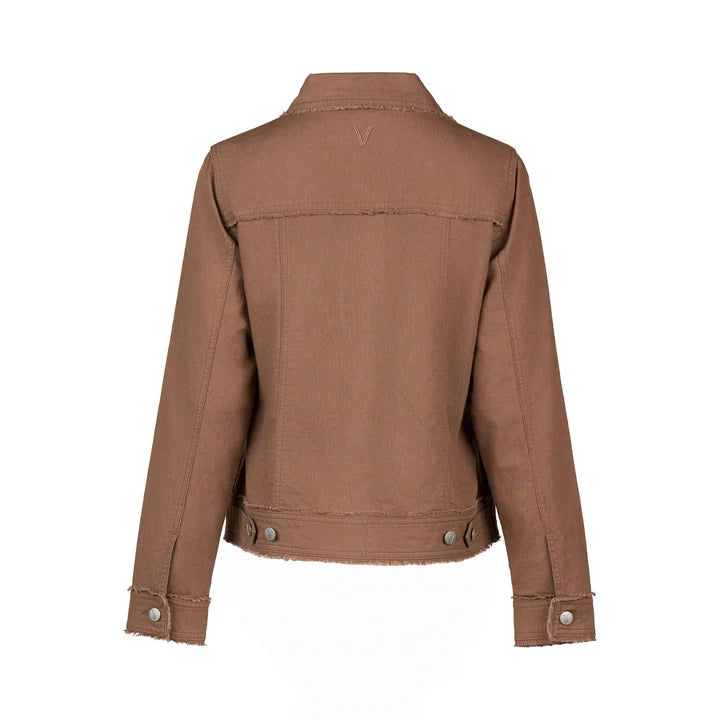 This button-up jacket is made from a linen-viscose blend and features frayed seam detailing for a textured look.