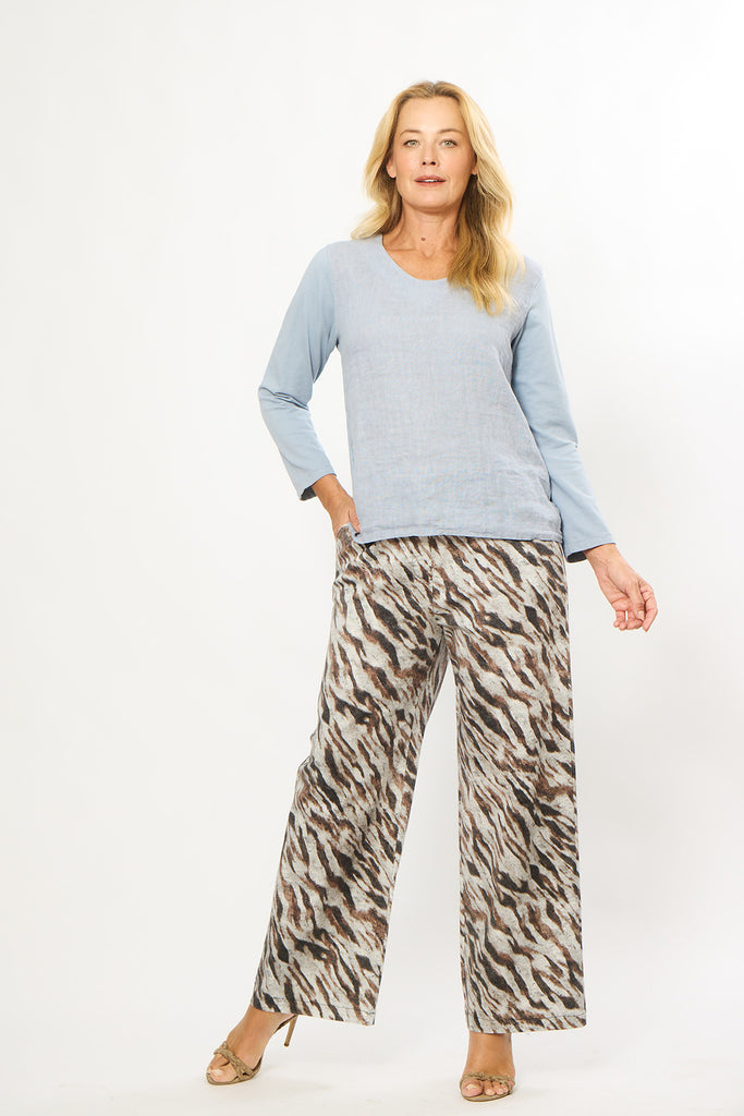 Linen Front V Neck Top – Jeans Blue