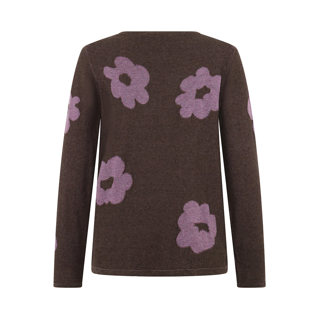 in a rich Dark Brown tone with contrast Mauve Flower Design