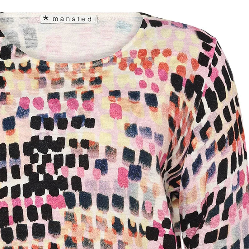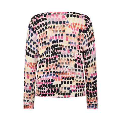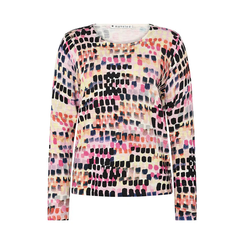 Dina-Smudge Print Cotton Crew Long Sleeve Knit-Pink