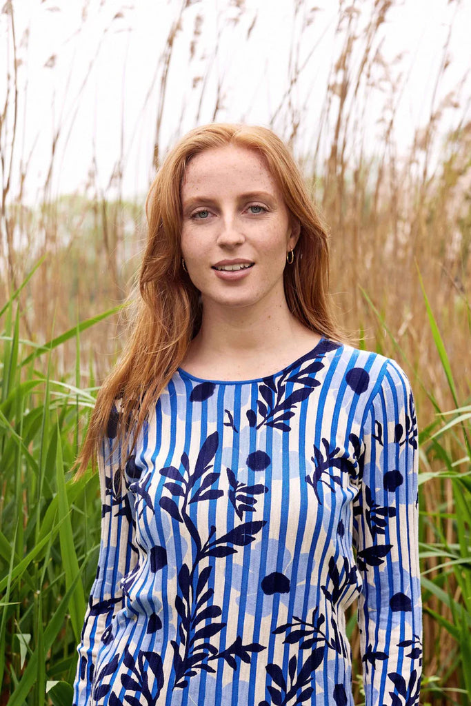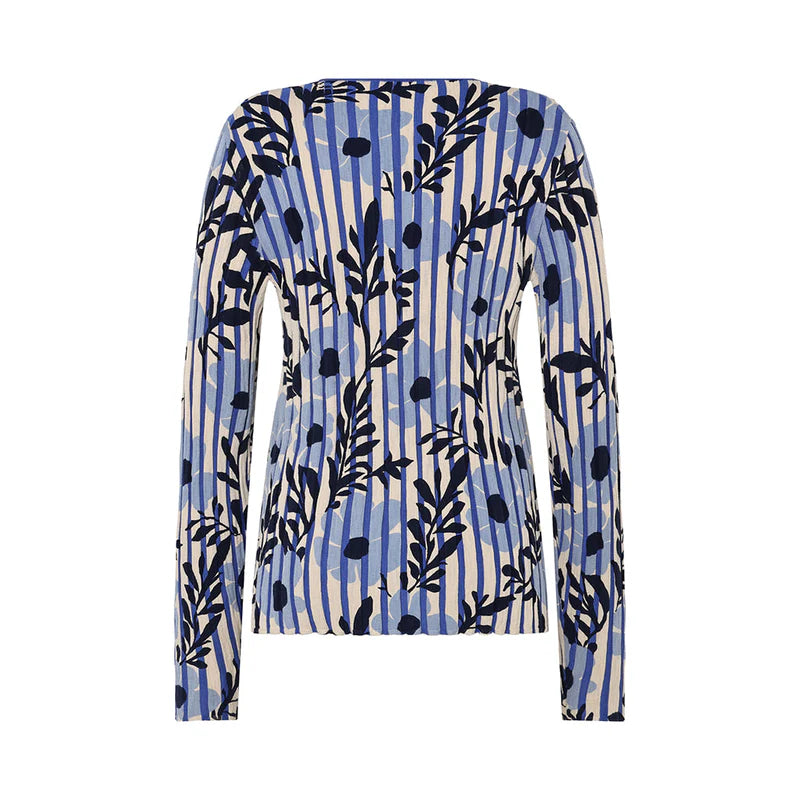 Panama Flora Stripe Crew Cotton Neck Knit Jumper-Blue
