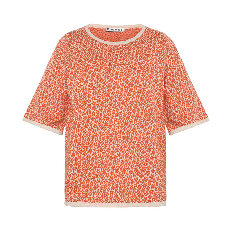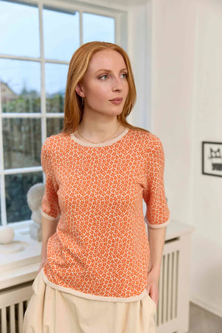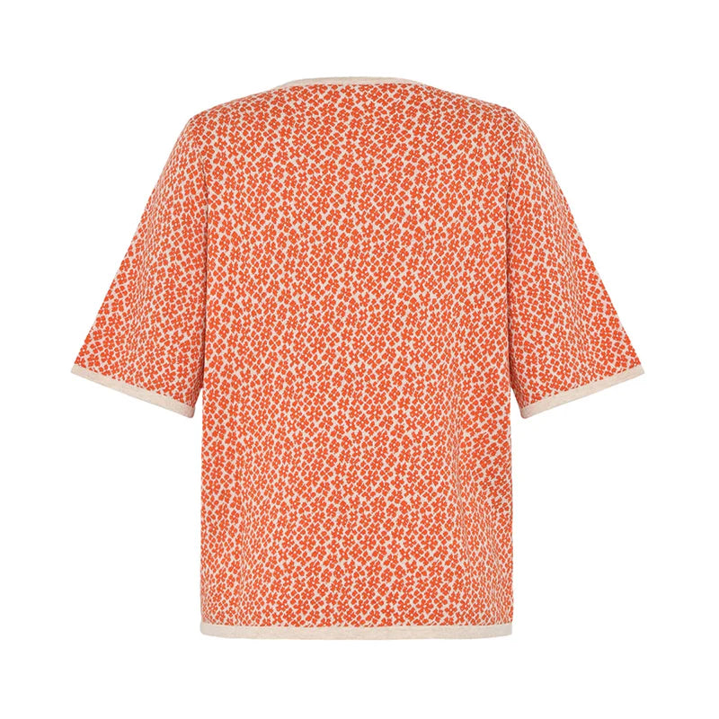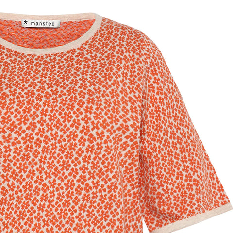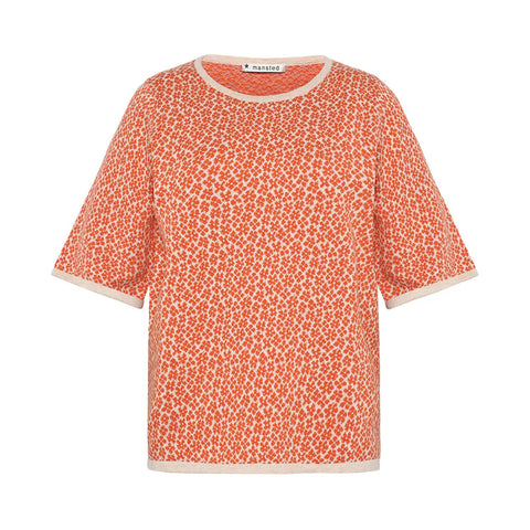 Floss-Posy Party, Crew Neck Short Sleeve Cotton Knit Top-Sunny Orange