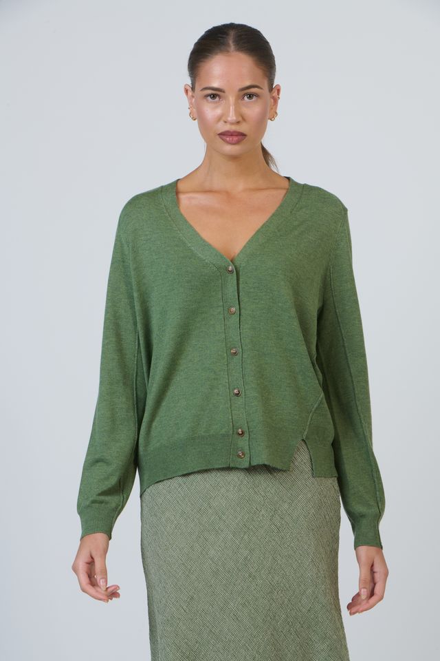 The relaxed fit drapes comfortably over the body, while the smooth knit and hip length cut offer easy styling. Wear as is, fully buttoned for a neat appearance or loosly open as a lightweight cardican alternative.
