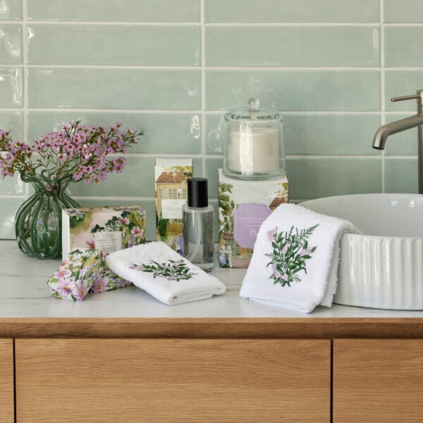 Add a touch of charm to daily routines with the Pilbeam Living Country Garden Face Washer Set. This beautifully presented trio includes one embroidered face washer featuring a delicate botanical motif in soft lilac and green, complemented by two plain face washers in coordinating pastel and neutral tones. Made from soft, absorbent cotton and tied with a Pilbeam Living ribbon, this set makes a thoughtful gift and a stylish addition to any bathroom.