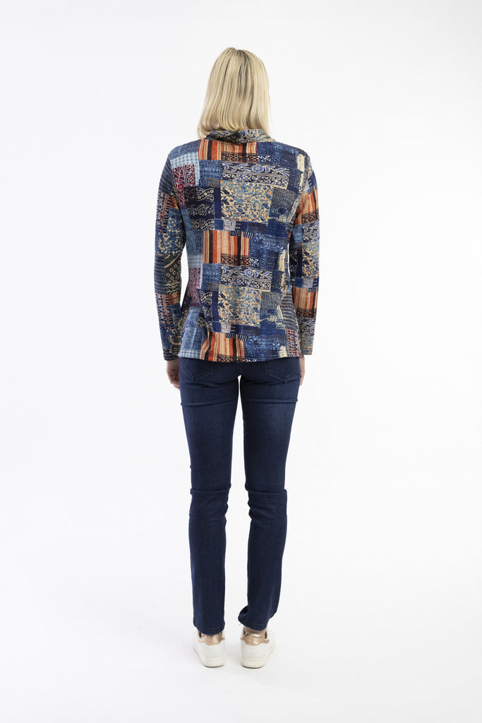 The Cowl Neck Top is a must-have for adding color and style to any outfit. Designed with a soft, draped cowl neckline and a relaxed fit, it offers a flattering silhouette that’s both stylish and comfortable. Crafted from a sustainably sourced rayon blend, this top feels luxuriously soft against the skin while keeping you cozy during the colder months. The rich colors and unique patchwork prints make it a standout addition to your winter wardrobe.