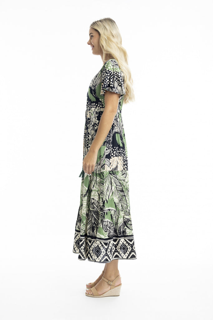 Make a bold statement in the Nungwi Dress, crafted from 100% sustainable rayon for a breathable, lightweight feel. With its vibrant all-over print, buttoned bust, and flowy maxi length, this dress is made for sunshine-filled days and tropical getaways.
