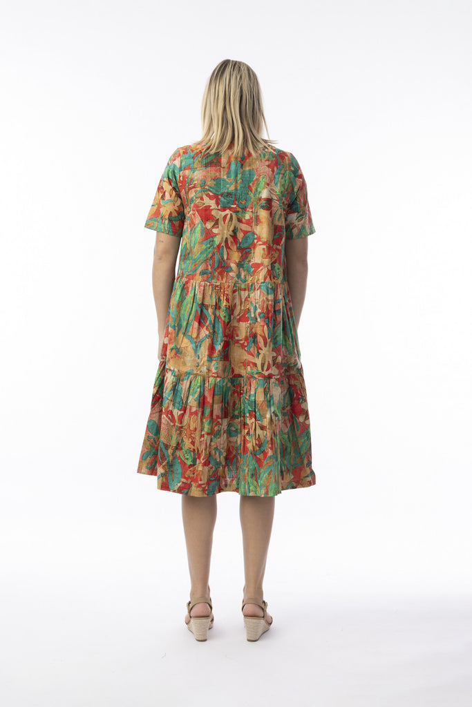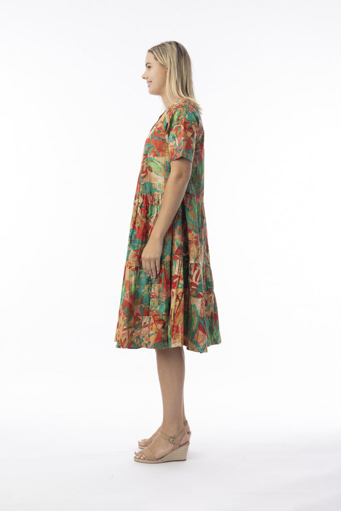 Stand out in style with Orientique's vibrant stylish Sao Paulo Layered Collar Dress. The dress features a collared neckline and fitted short sleeves. It falls gracefully at a midi length, giving the dress a classic, sophisticated touch. Combining beautiful prints and colours with convenient side pockets, adds a practical element to the style. Whether for a casual outing or a special occasion, this dress is the perfect addition.