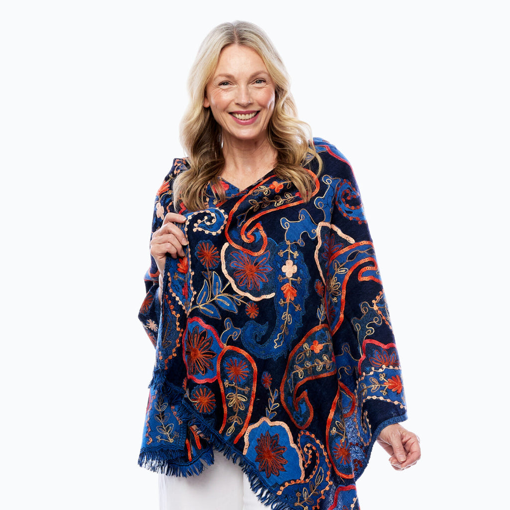 Wrap yourself in luxury and warmth with Claire Powell's new collection of 100% wool scarves, beautifully embroidered with unique paisley and floral designs. These scarves are thick yet lightweight, offering exceptional warmth without feeling heavy, and are soft to the touch for ultimate comfort.
