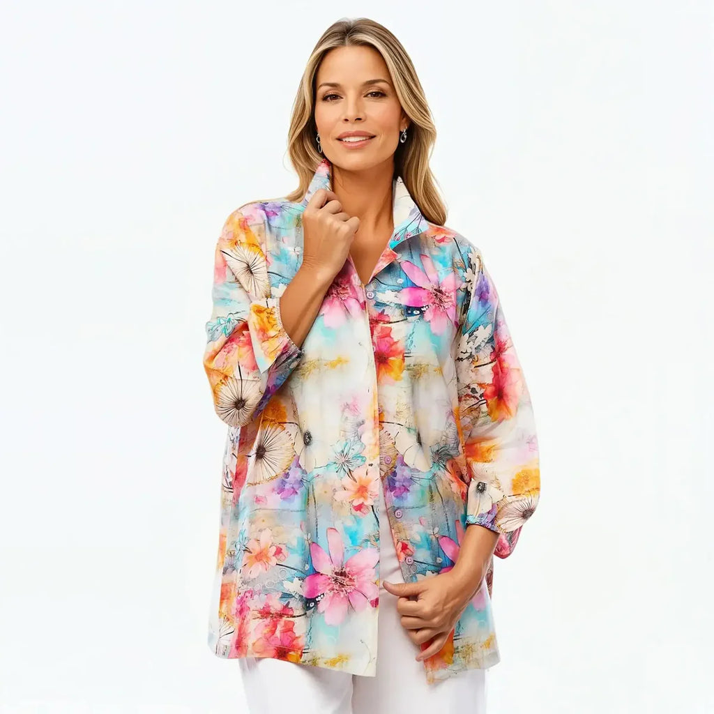 - Adaptable Sleeves: 3/4 sleeves that transition up to the elbows for a relaxed look.