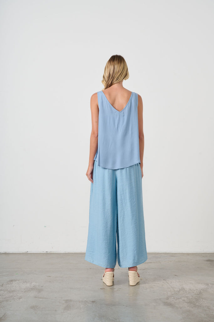 For an elevated party look, pair these wonderfully comfortable pants with the matching Drape Jacket in Sky Blue and a co-ordinating or contrasting camisole top.