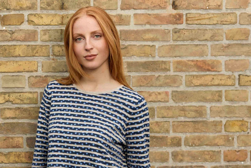A cool and lightweight cotton blouse, with intricate feature embroidery in stunning fuchsia and pink shades, set against a deep navy base. Featuring a strong Scandi aesthetic, with a split neckline and three quarter length balloon sleeves adorned with delicate floral details, adding just the right touch of softness. Style...