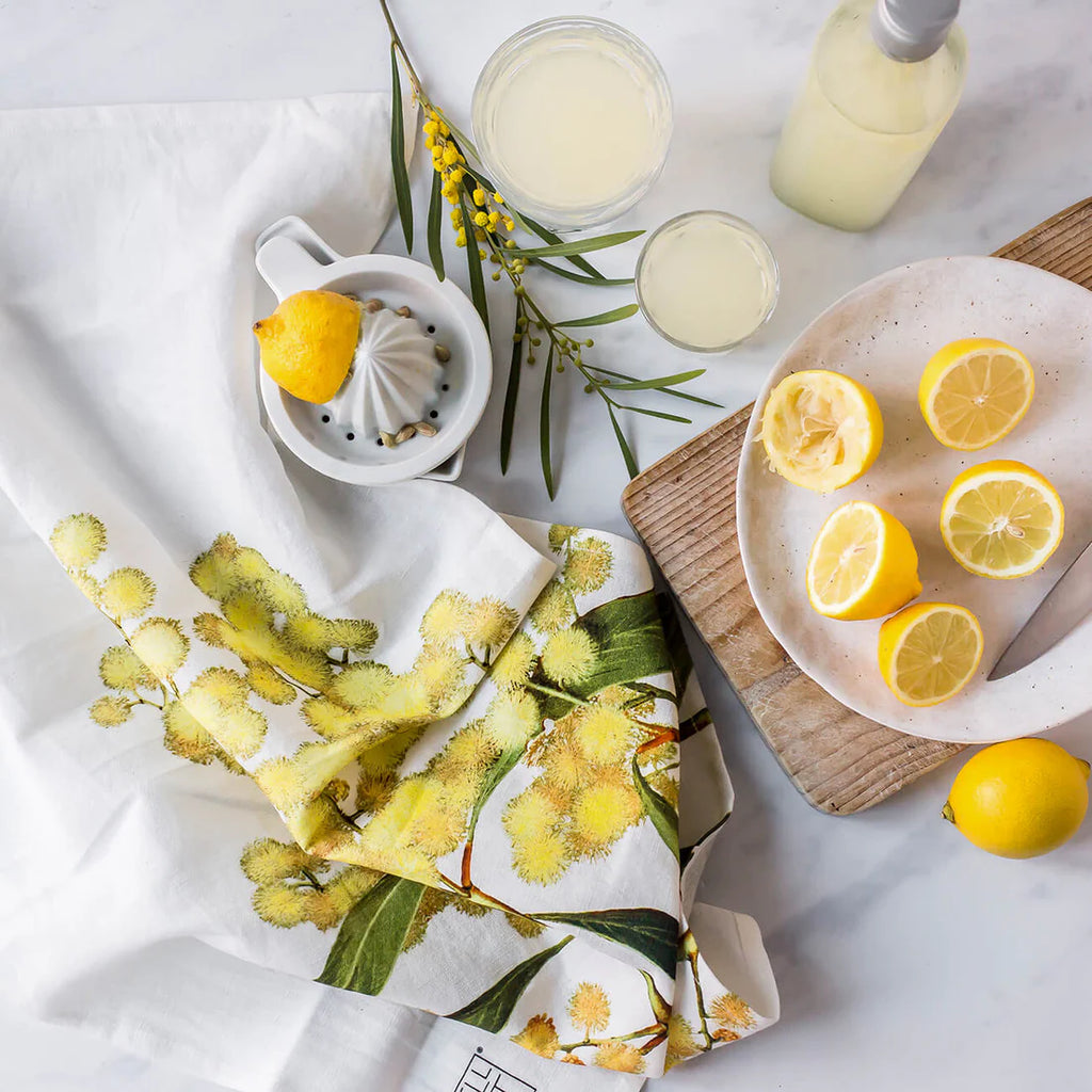 What a gorgeous way to bring some sunshine into your kitchen! Featuring the beloved Golden Wattle, Australia's national floral emblem by Meryl Bell, this 100% organic linen cotton tea towel makes a brilliant gift to send overseas, a house warming gift or really for any occasion. Happy cooking with this best seller!