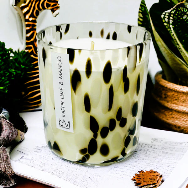 Experience the timeless elegance of our Vogue Dalmatian candle. This vintage-inspired candle burns for an impressive 70 hours, filling your home with the invigorating scents of Kaffir Lime and Mango.