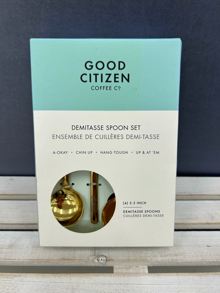 Indulge in the luxury of the Good Citizen Coffee Co - Engraved Phrases Demitasse Spoon Set. Made of gold-plated stainless steel, these demitasse espresso spoons offer a touch of elegance to your daily coffee ritual. The set of four spoons comes engraved with inspiring words of encouragement, adding a literary charm to your coffee experience.