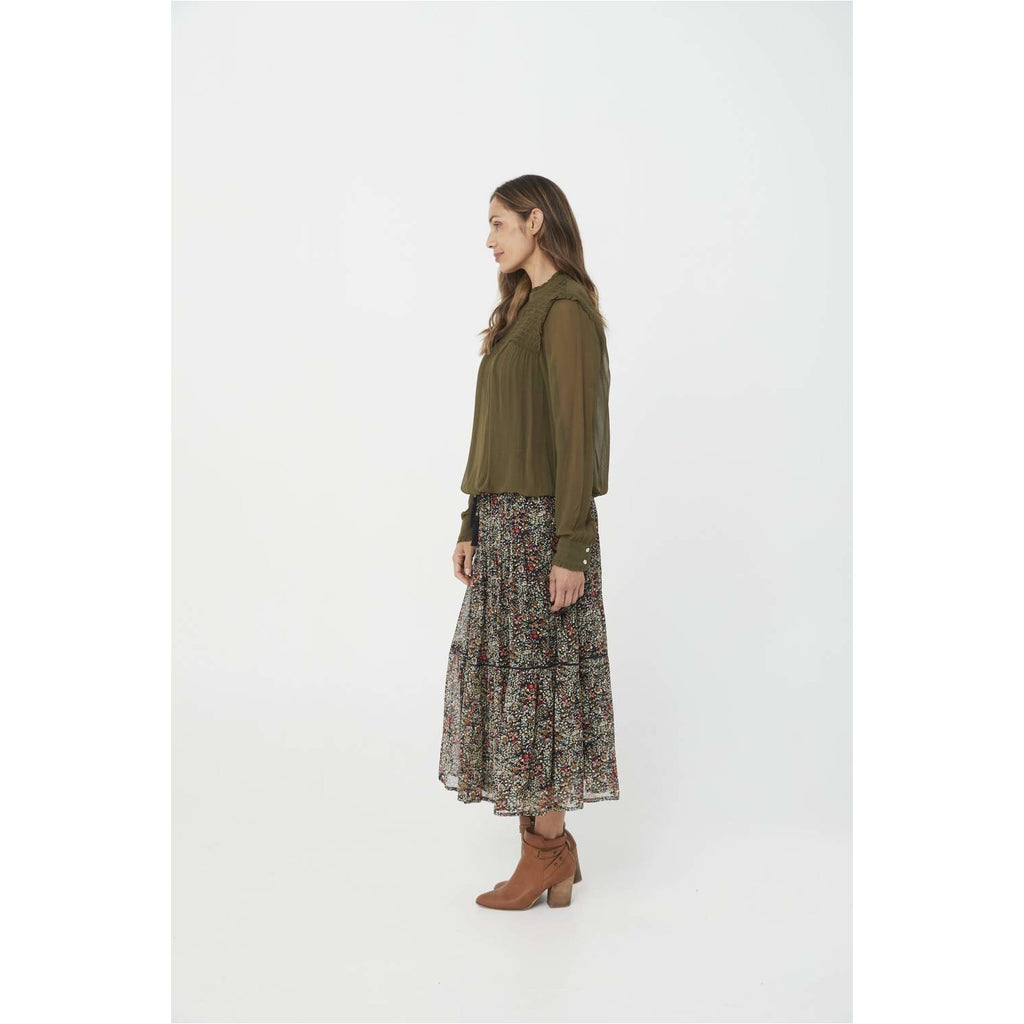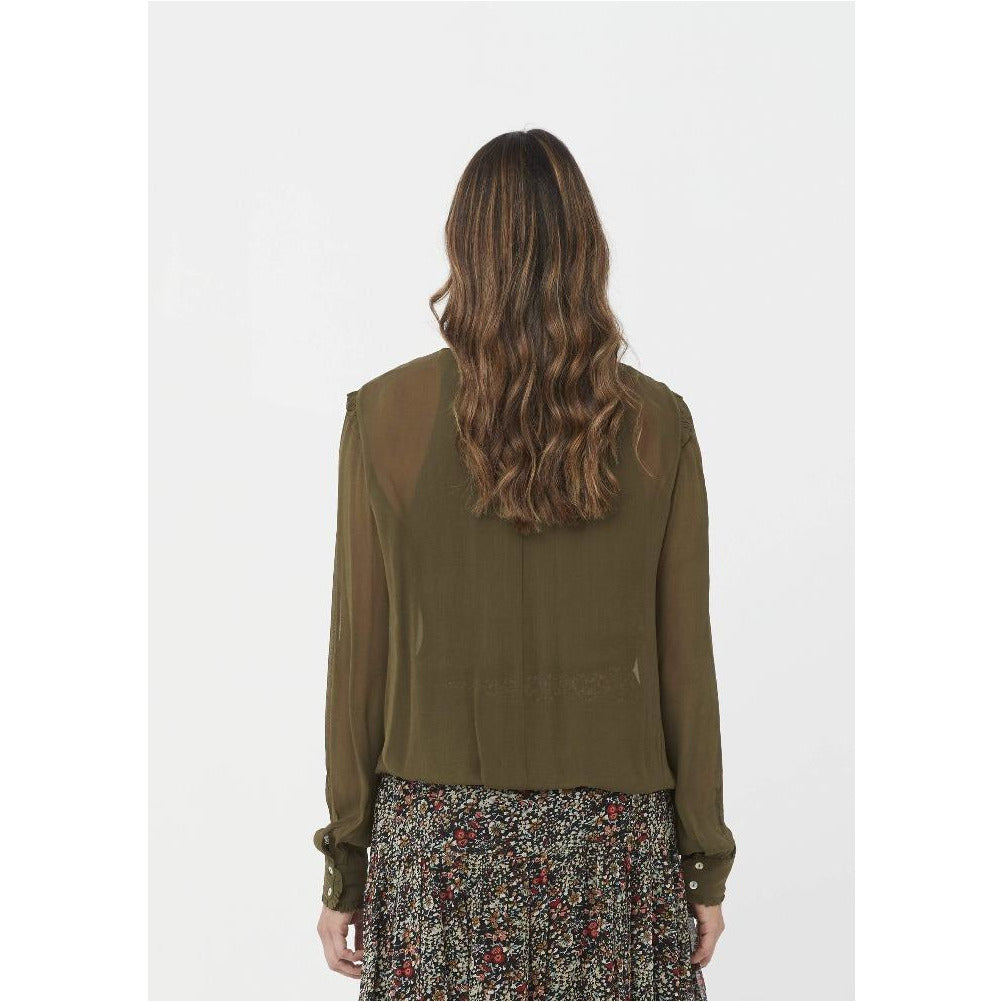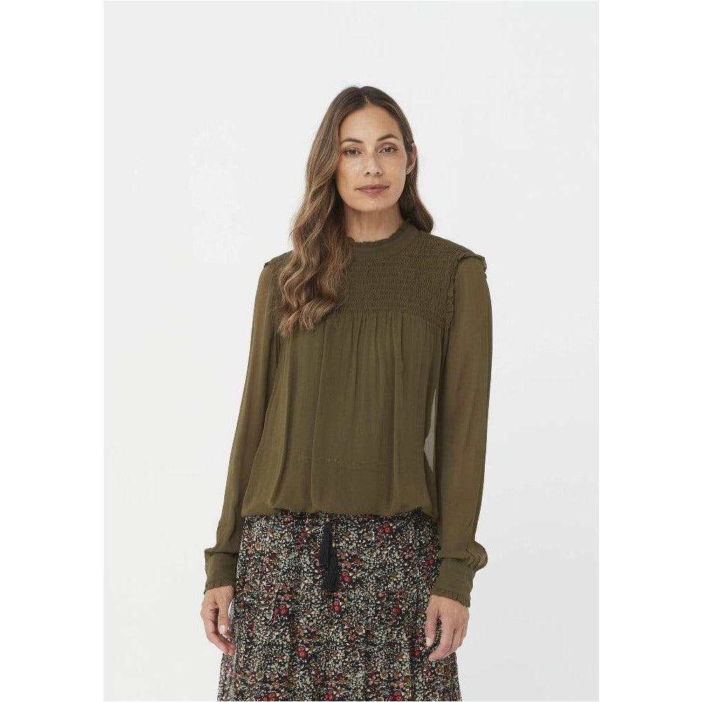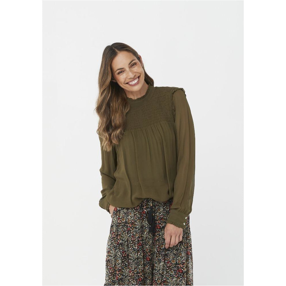 Eva Top is long-sleeved with a high, softly elasticated neckline. The top is sheer, with a matching singlet. Pretty ruching around the chest and shoulders finishes the top perfectly.
