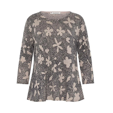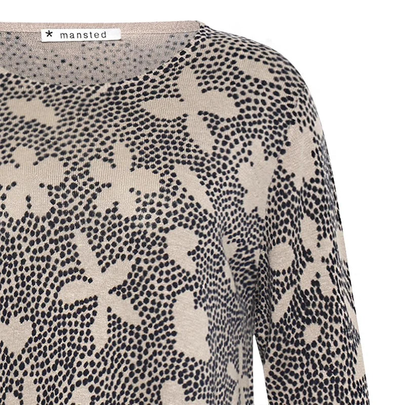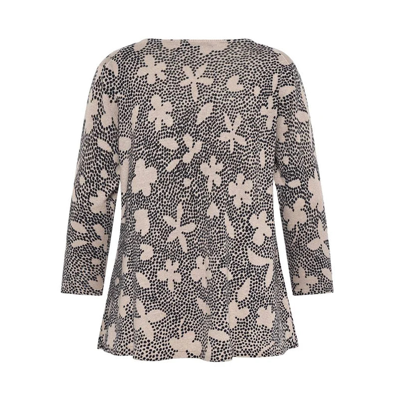 Gisela - Dot Flower Print 3/4 Sleeve Linen/ Hemp Knit-Sand