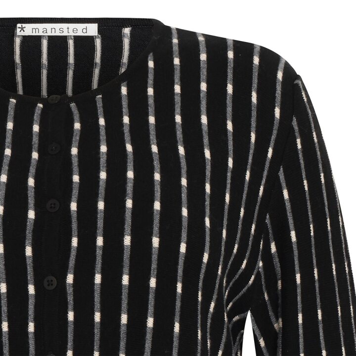 A refined layering piece designed for effortless elegance. Crafted in a premium 70% merino wool and 30% cotton blend, Cardigan Pepper features a fine knit with a subtle vertical stripe and delicate dot accent for understated texture.