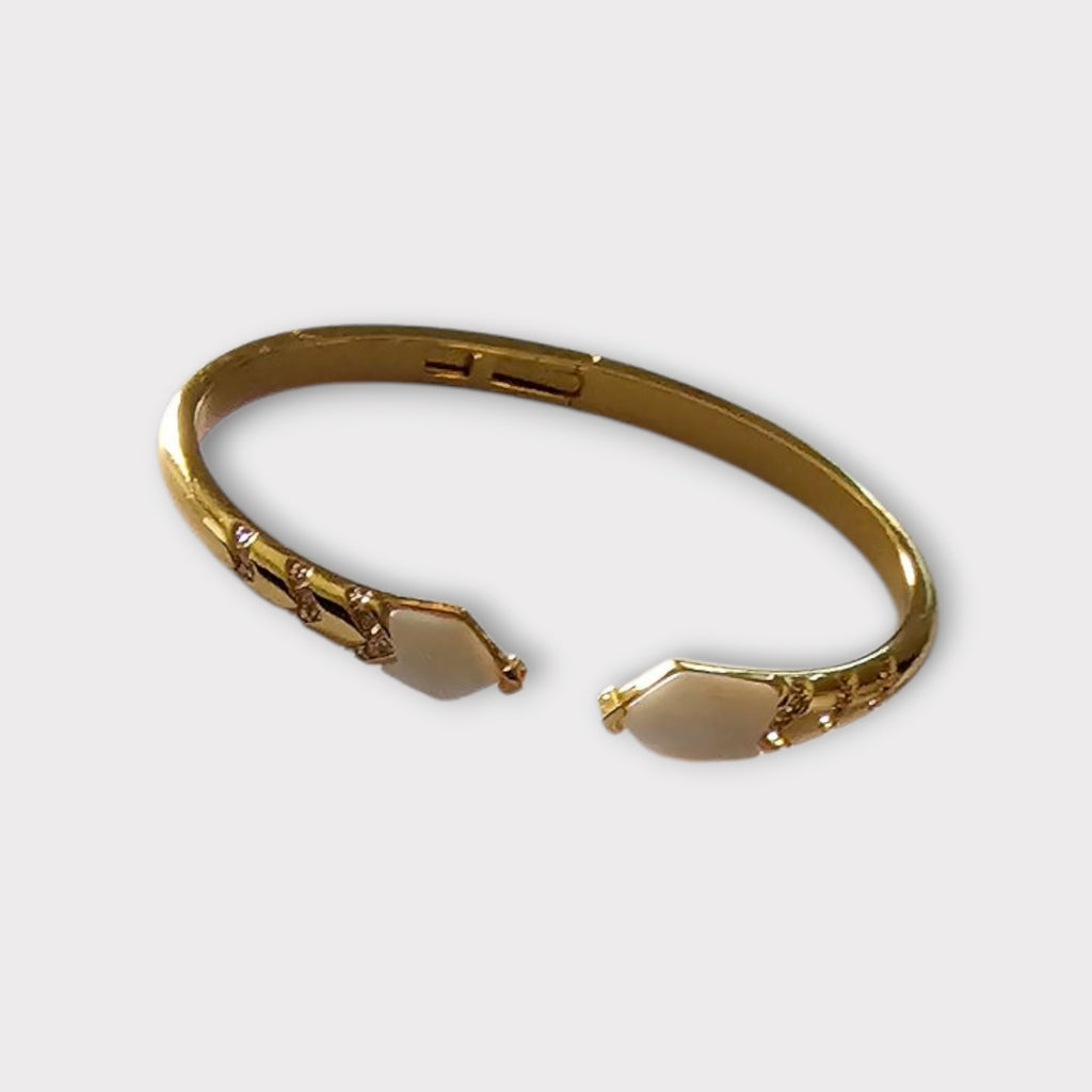 Mother-of-Pearl & Crystal Open Bangle – Gold Tone