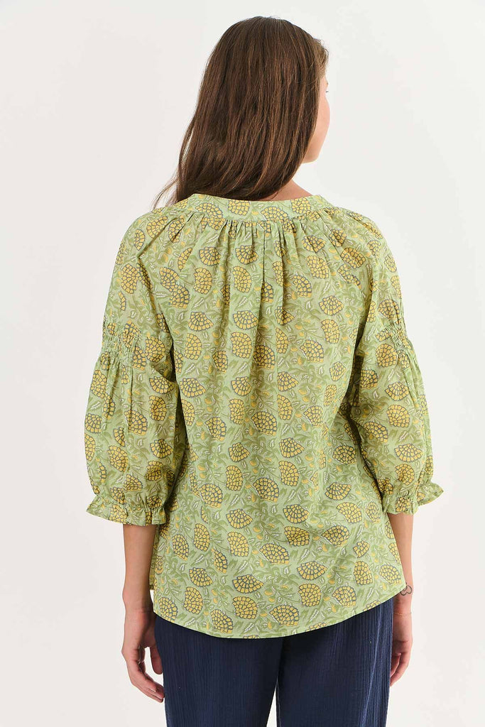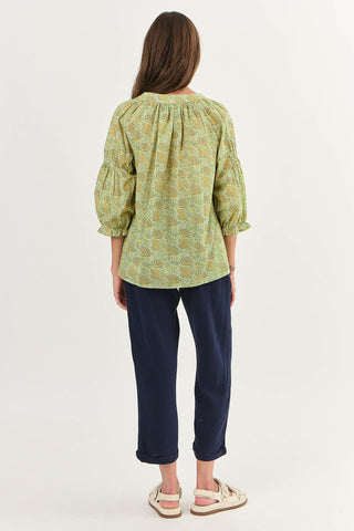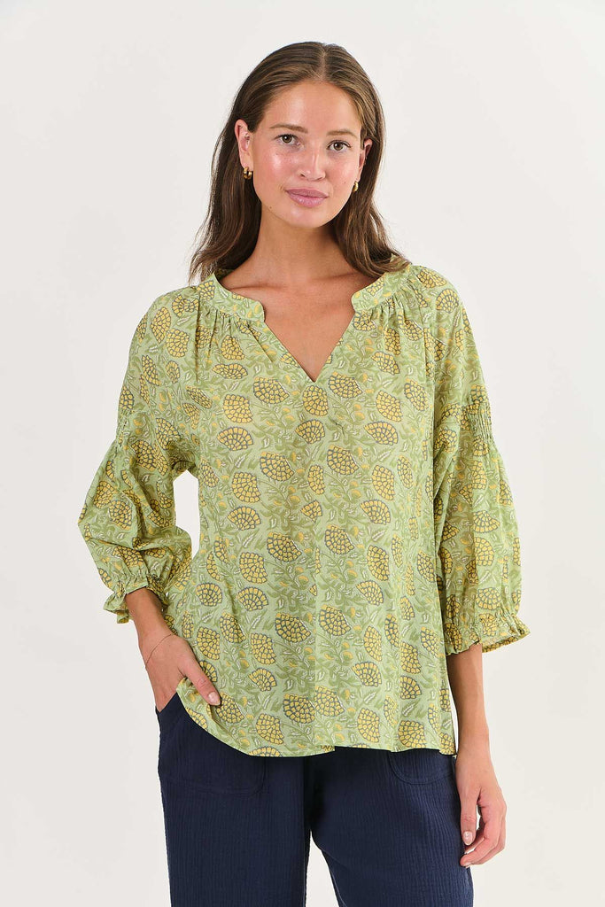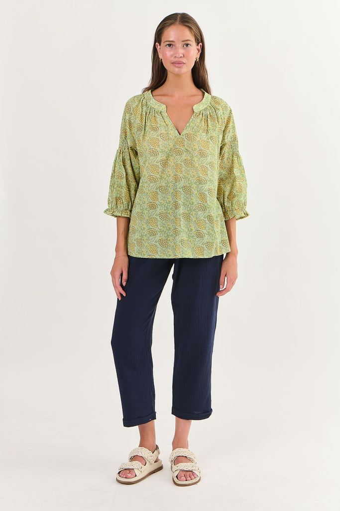 Elevate your style game with the NAM45 cotton top. With 3/4 sleeves, a v-neck, and a bold abstract print, this top is guaranteed to make a statement. Made with 100% cotton and a relaxed fit, it's the perfect choice for anyone looking to add some personality to their wardrobe.